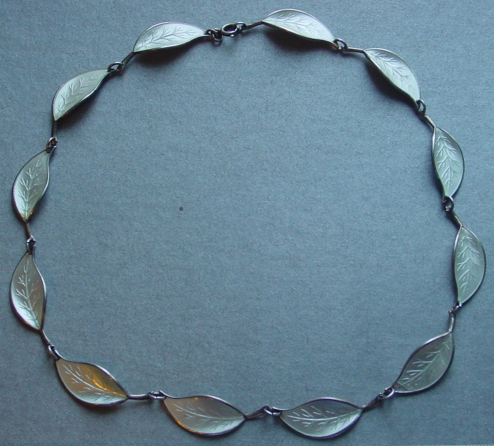 Leafs motifs were super popular at the time, as evidenced by the silver enamel Willy Winnaess for David-Andersen necklace that I also bought (pictured below). The David-Andersen company was founded in 1876 and popularized enamel jewellery early in the 20th century. Although well-established, the company embraced whatever was new and fresh in design. Winnaess worked for David Andersen in the 1950s.