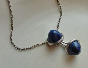 I think it looks kind of modernist. My original plan was to make earrings, but like I said: I’m lazy. This does, I hope, illustrate how easy it is to recycle old single cufflinks and earrings.
