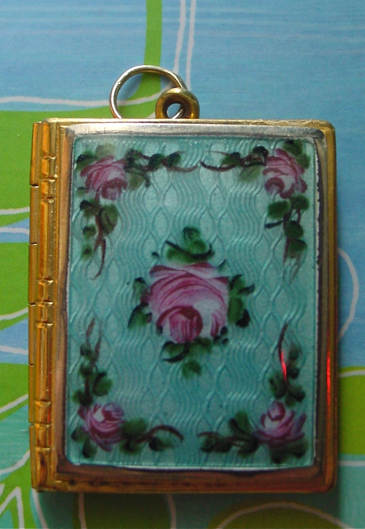 I got this pretty locket in a jewellery lot I won on eBay. It’s enamelled front uses a technique called guilloché, which basically means a machine etched pattern.