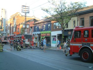 Some bad news and good news. There was a conflagaration in our hood on Victoria Day. There was a second storey fire in the row of storefronts housing The Australian Boot Company, Deluxe and Sydney’s. Cub reporter Andrew K. talked to the staff at Sydney’s this morning. While most of the ready-to-wear stock was spared water damage, some of the bespoke fabrics were effected. And the Australian Boot Company site is reporting smoke and water damage.