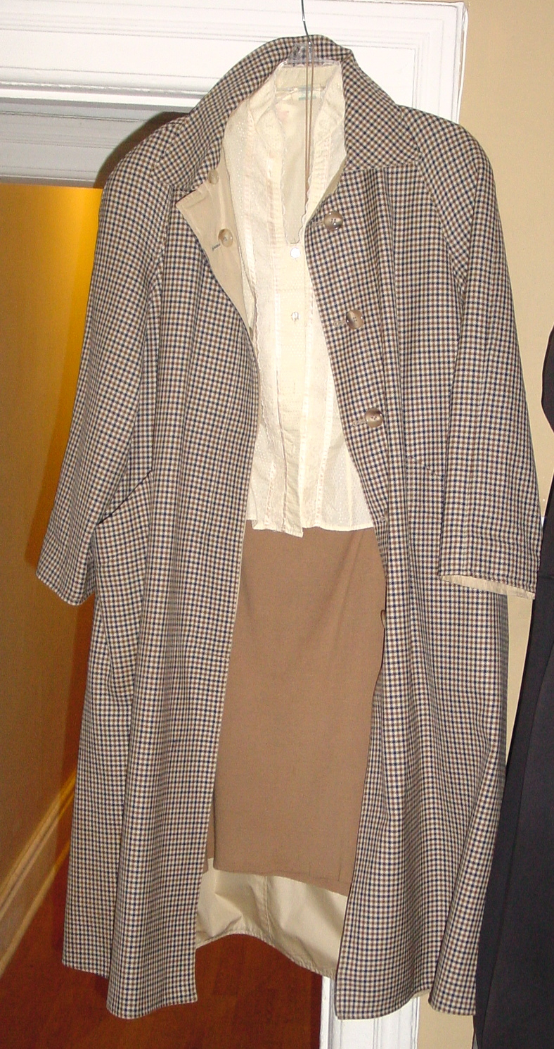This past week, I hit the thrift shops in search of some camel-coloured clothes for my fall wardrobe. I picked up this cool, reversible Aquascutum club check coat and a Pringle of Scotland skirt. I also found a Burberry mac, but it looked like someone had thrown up on it. I’m not afraid of second-hand clothing, but the idea of washing out chav barf was too skeevy even for me.