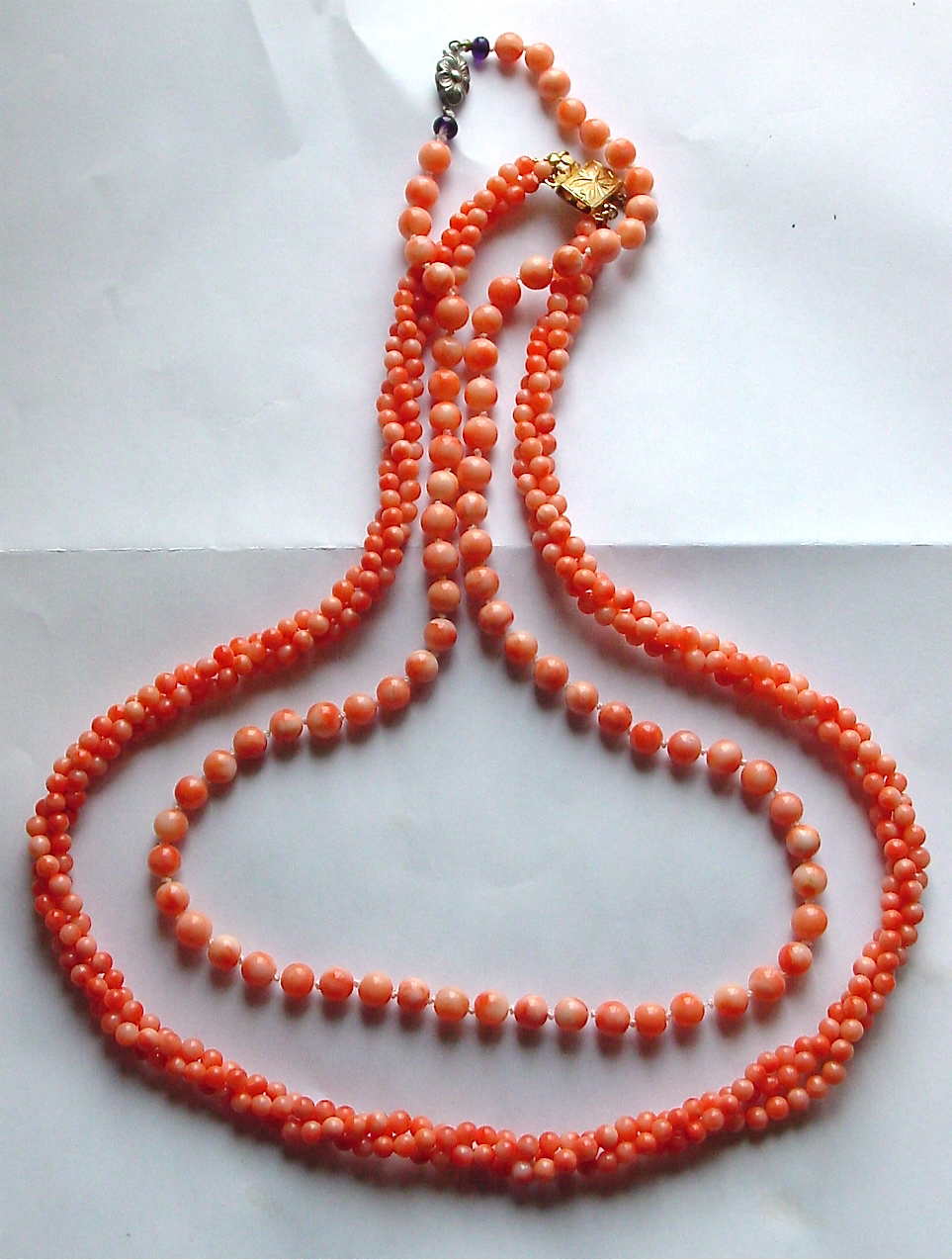 I remember going into Ling’s Importers in Bloor West Village and admiring some New Old Stock vintage pink coral jewellery. I was surprised at the price, but the proprieter Alex Ling told me that good pink coral is becoming harder to come by so the value had more than doubled in just 10 years. In just 30 years, overharvesting and pollution have endangered the coral reefs. There have been frequent calls to ban coral altogether, just like ivory. Tiffany & Co. discontinued using coral in 2002.