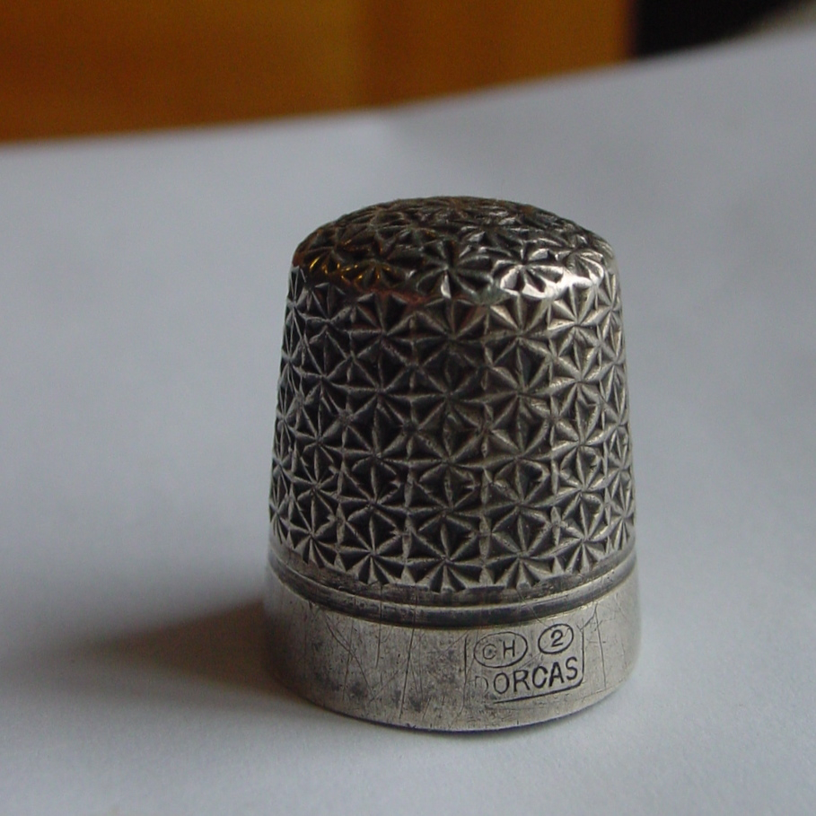 In olden times, silver thimbles were popular but were not particularly durable. With repeated use, steel needles would eventually poke through the silver (and the skin of the user). Horner had the idea sandwiching steel with sterling silver. He called this thimble Dorcas.