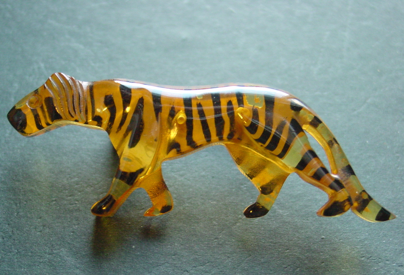 Anyway, I do like Bakelite jewellery’s colourful chunkiness. I don’t go out of my way to collect it, but if I come across some for cheap, I’ll pick it up quick smart. The most spectacular piece I own is the handcarved and painted Prystal tiger brooch pictured above, which I got for $5 at the Mennonite Central Committee store in K-W. Pictured below are various spacer bangles, a ring and a crescent-shaped brooch, which all total probably cost $20.