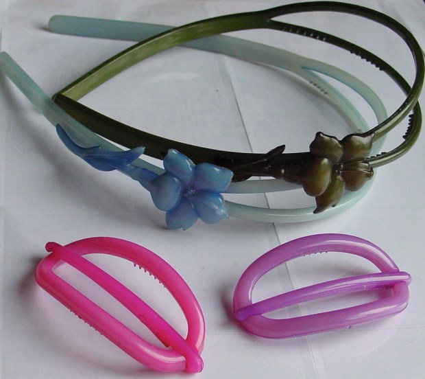 I have oval barrettes, both the large ones and the smaller, more narrow ones in different colors. I also have several bangle bracelets and combs by them. I have the flower barrettes and figure 8 barrettes too. Let’s just say I went nuts when I saw B & D barrettes!!!