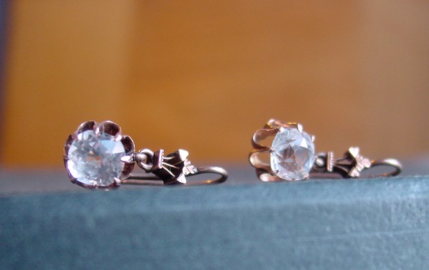 Perhaps I’ll wear these earrings today. They date from the late Victorian period They feature paste stones in a rose gold tulip mount that dangles from a leafy design. I got them at the last Waddington’s Jewellery Auction (there’s another one coming up Dec. 6).