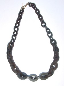 A quick review of the Thrift Club rules: 1. No purchase shall cost more than $36 dollars; 2. Thrifting is done in thrift shops, garage sales, online auctions or Craigslist. I found the Gutta Percha chain (above) at Rozaneh. I can’t remember the exact price, but it was in the 30s.