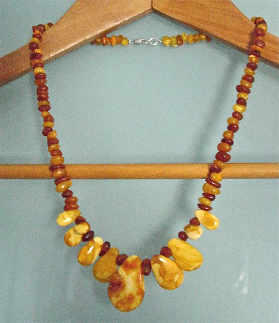 I’ve probably mentioned this before, but the Baltic peoples have worn amber jewelry for its decorative and its natural analgesic properties for centuries. That’s why they make teething necklaces for babies out of amber. The only caveat is that it must by natural amber — not copal or reconstituted — or it won’t work.