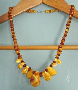 I’ve got old arthritic knees, so what I did was take two broken amber necklaces, made one, and called myself crafty in the morning.