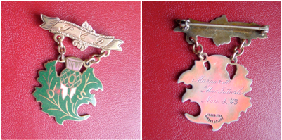 I found the Daughters of Scotia pin pictured above on the weekend. The DOS were the ladies auxillary of the Benevolent Order of Scottish Clans, or BOSC. The BOSC was not just a social organization, it also operated as a mutual aid society that provided insurance to its members. In the 19th century, this was pretty common. One of my ancestors is buried with a Woodmen of the World tombstone.