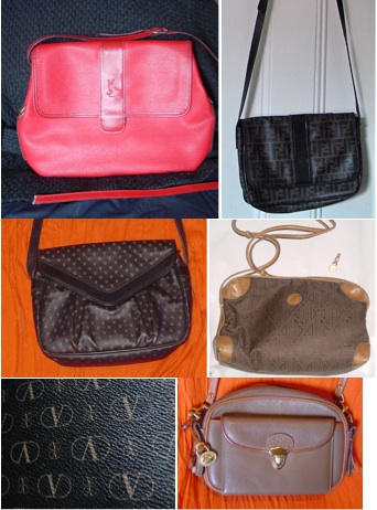 Oh, the bags: (Clockwise from top left) Yves Saint Laurent; Fendi; Chloé; Dooney & Bourke; Valentino; and Fendi. They were all real ones, not fakes, which are plentiful in thrift shops.