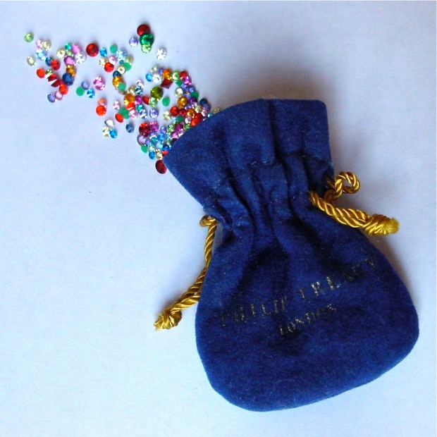 Anyway, I do have a few such trinkets left over from my fashion days, including this cute little felt pouch filled with Swarovski Crystals from a Phillip Treacy show in the 90s.