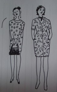 I found these drawings I did of early ’90s era Bill Blass (left) and Krizia (right) print dresses I found whilst out thrifting. I was sketching them out trying to find a way to accessorize them in a way that would make them look fresh, not dated. In the end, I deaccquistioned them not because they looked weird, but because I couldn’t fit into them anymore.