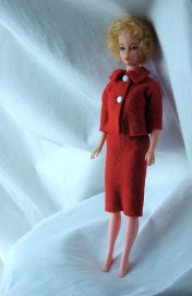I did a little research and discovered that her name is Mitzi, that she was made by the Reliable Company of Canada and she is one of the earliest Barbie Clones. When Barbie debuted in 1959, the couldn’t keep her on the shelves, so department stores approached toymakers like Ideal and Reliable (who made the Canadian version of Mitzi) to come up with a lookalike. Mitzi was discontinued in 1962.