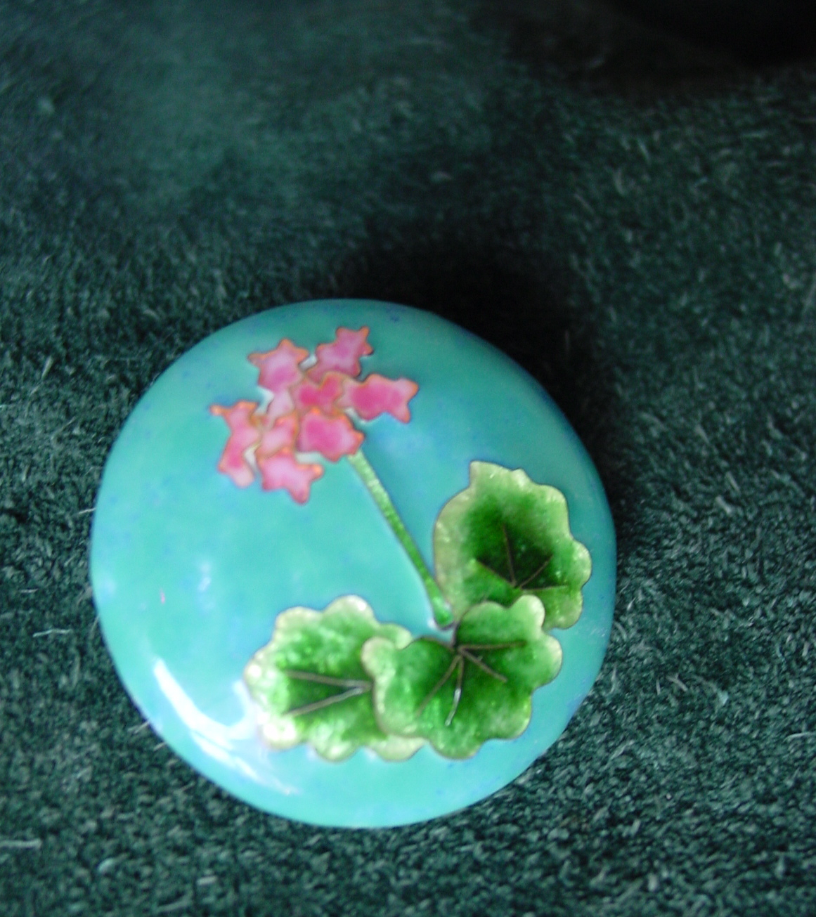Spring is officially here! To herald this event, I’m sharing this picture of one of my favourite brooches. It’s a handmade, enamelled depiction of a geranium (which also happens to be one of my favourite flowers). I don’t know how old it is, but my guess is that it was born in the ’70s.