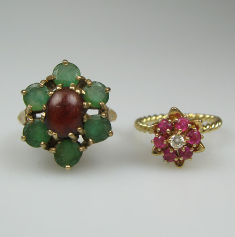 While I was waiting for my band of gold to arrive, I checked out the auction at Waddingtons and saw the twisted rope and ruby ring pictured above. I thought “two dainty rings would look pretty together.” I went to the auction, bid and won.