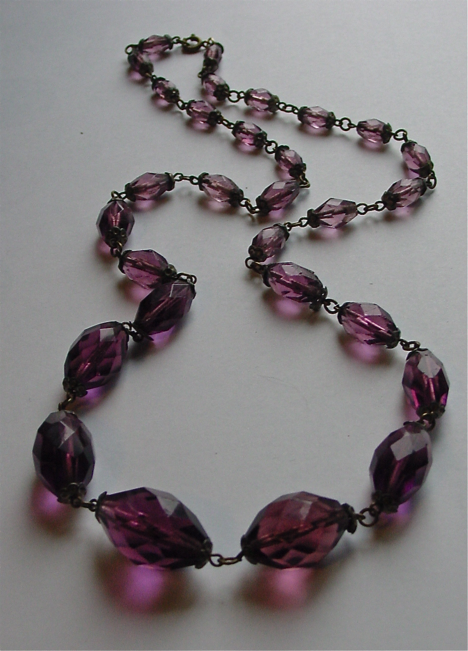 Finally, a purple glass, graduated bead necklace that I got in a bag of broken jewellery from the Value Village. It was an easy fix.