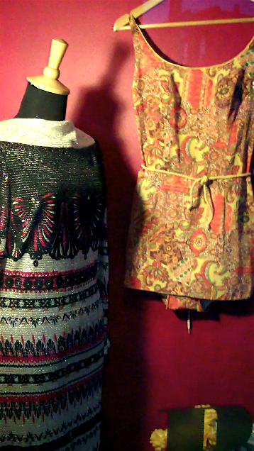 My niece was in town last week. We were wandering past Print Fine Vintage where we these two knit pieces in the window. The ’20s and the ’70s were good times for knits. Designers liked to play with their elasticity. And mid century materials like polyester and lurex were, literally, space age.