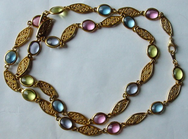 Costume filigree pastel plastic cabochon necklace, $2.