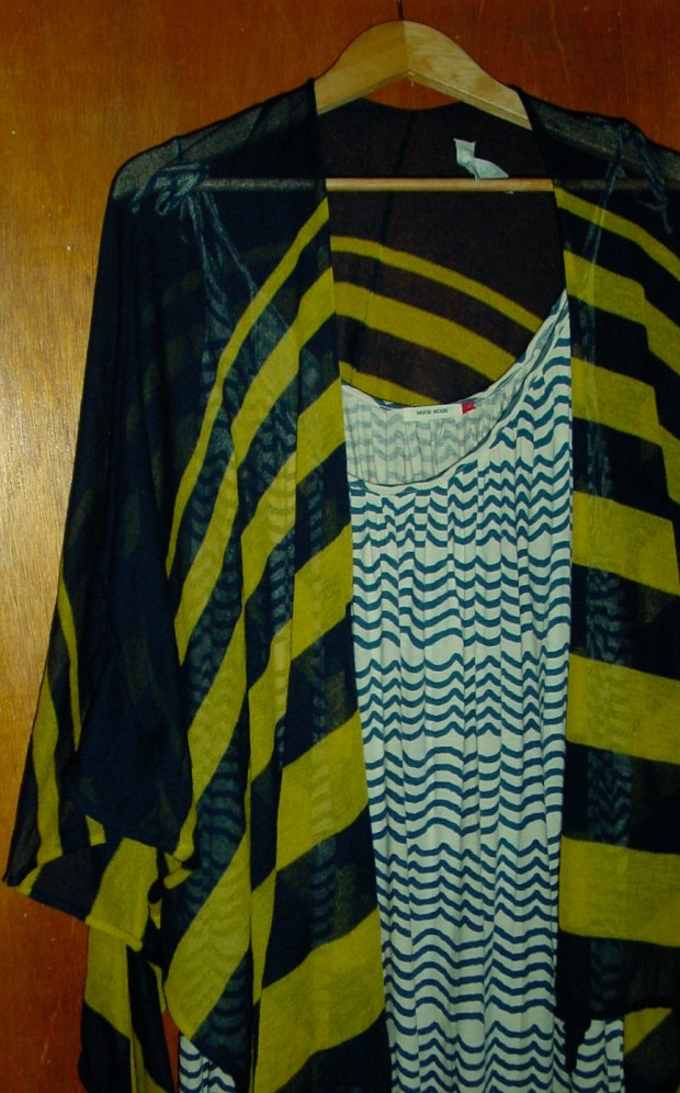As the temperatures have risen, so has my stripe mania. I picked up the blue and white Wood Wood sundress and the yellow and blue Cooperative shawl at Urban Outfitters last Thursday (aka the hottest day ever). I am now pairing stripes with more stripes. If I examine this phenomenon, I realize its a Proustian thing. One of my favourite garments ever was a pair of knit, horizontal striped culottes that I had one summer in high school.