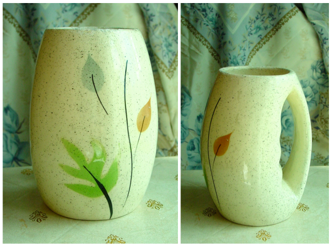 Found this unsigned pottery thing-a-ma-jig at the Value Village on Monday. I’m going to put flowers in it but I have no idea what it’s original purpose was. It’s got a handle but no spout, so it’s not a pitcher. Could be a complicated mug. As for the vase option, it’s bigger than a bud vase but smaller than most vases. I’m stumped. If you have any clues, let me know.