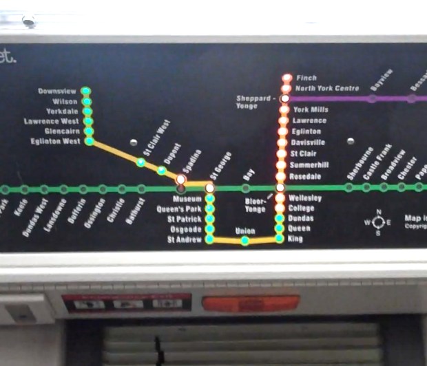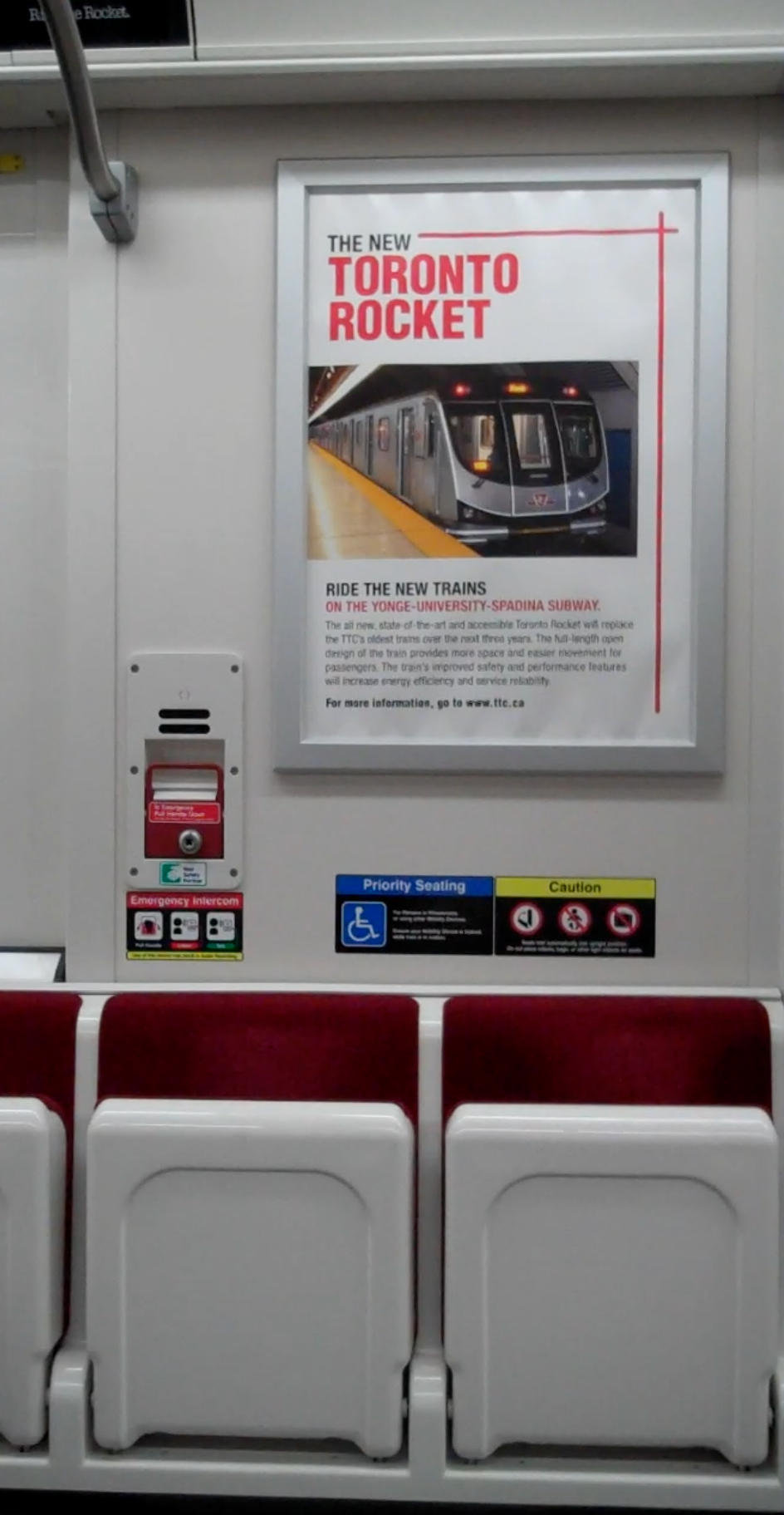 I finally got to ride on the new TTC subway train. I was so excited that I started taking pictures like paparazzi at a movie premiere. I was not alone in my public transit nerdery. As the train pulled into the station, two high school girls started screaming “Oh my god, it’s the Rocket!”