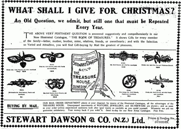 It’s marked 9ct on the bail. It cost $2. Here’s an ad with Kia Ora jewellery from around 1910.