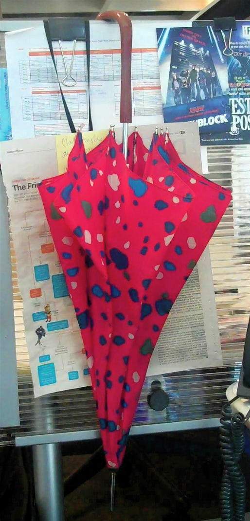 This is my bestest brolly. I’m guessing it’s from the ’80s. What makes it wonderful is its print.