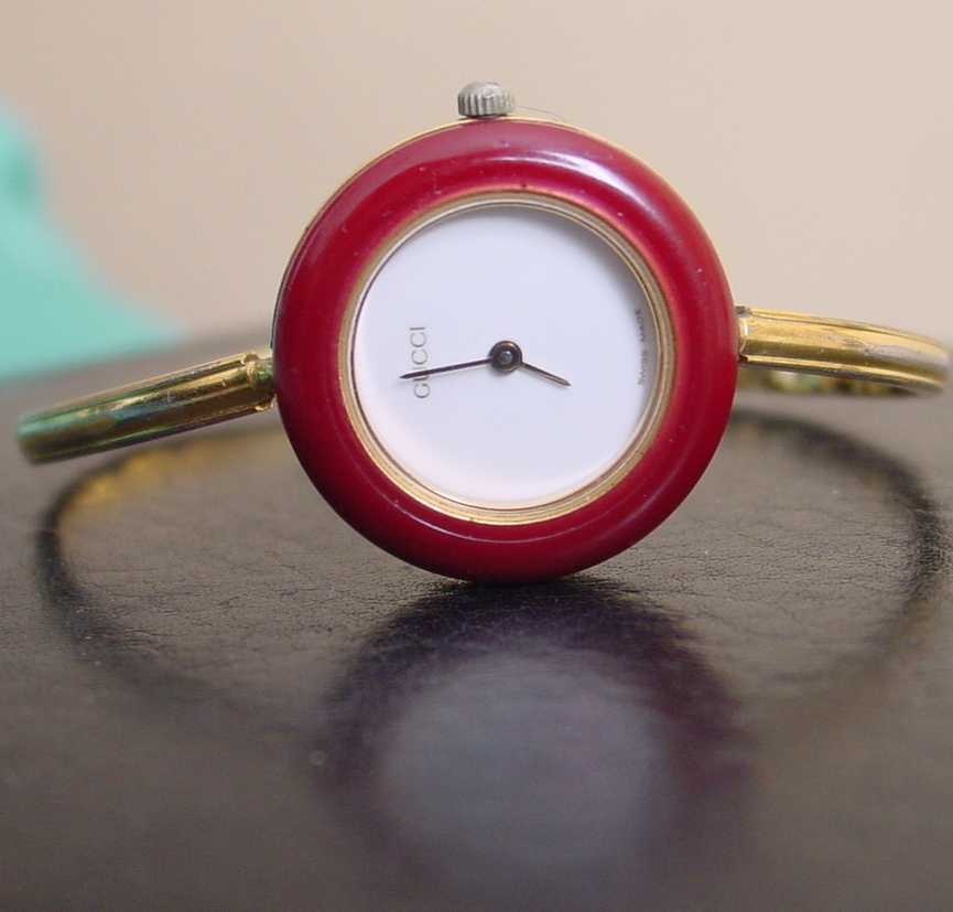 Needless to say, I don’t have a lot of Gucci to celebrate with. I have a knock-off of the iconic Double G logo snakeskin bangle (pictured at the top of the page). I had a 1100 bangle watch that I sadly lost in Parkdale. And I have an ’80s-era 1200L watch. I have replaced the band with a green snakeskin strap because it felt more Gucci.