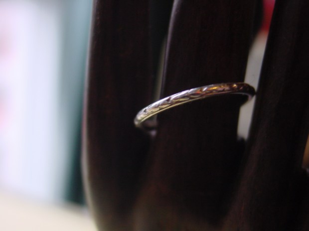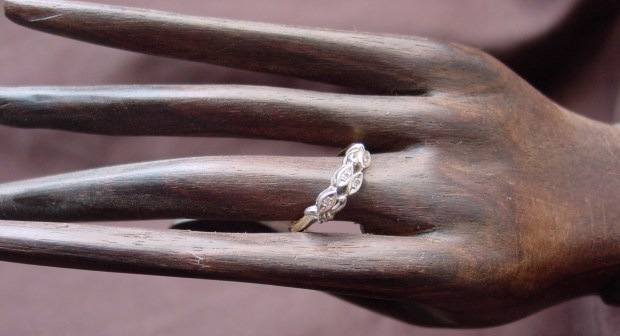 Downsizing isn’t always a sign of austerity. In the early 20th century, advances in technique allowed goldsmiths to use the strength of platinum to create daintier jewels than soft metals like gold and silver would allow. Pictured above is an art deco platinum band that I used to have.