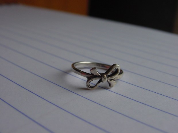 For those who know me as a fan of big, knuckle duster rings, it may come as a shock that lately I’ve become entranced by the idea of small bands. Rings with wire-thin shanks and wee, delicate stones. It’s not a totally new preoccupation: The sterling silver bow pictured above has been a favourite for years. It reminds me of wearing a string tied around your finger so you don’t forget something. Below are some other wee rings that I have had over the years.