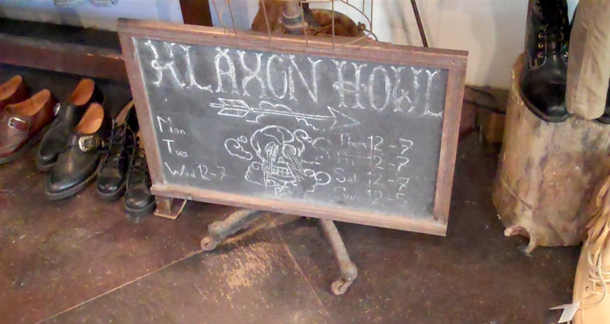 On Saturday, Mr. Andrew and I went to visit the new Klaxon Howl shop (just around the corner, in the location of the former Delphic, which was also run by KH’s Matt Robinson and Lena Kim). It’s pretty awesome. The same great selection of heritage-inspired gear but bigger. The store only carries boy clothes, I still want one of their HBC Blanket Duffel bags.