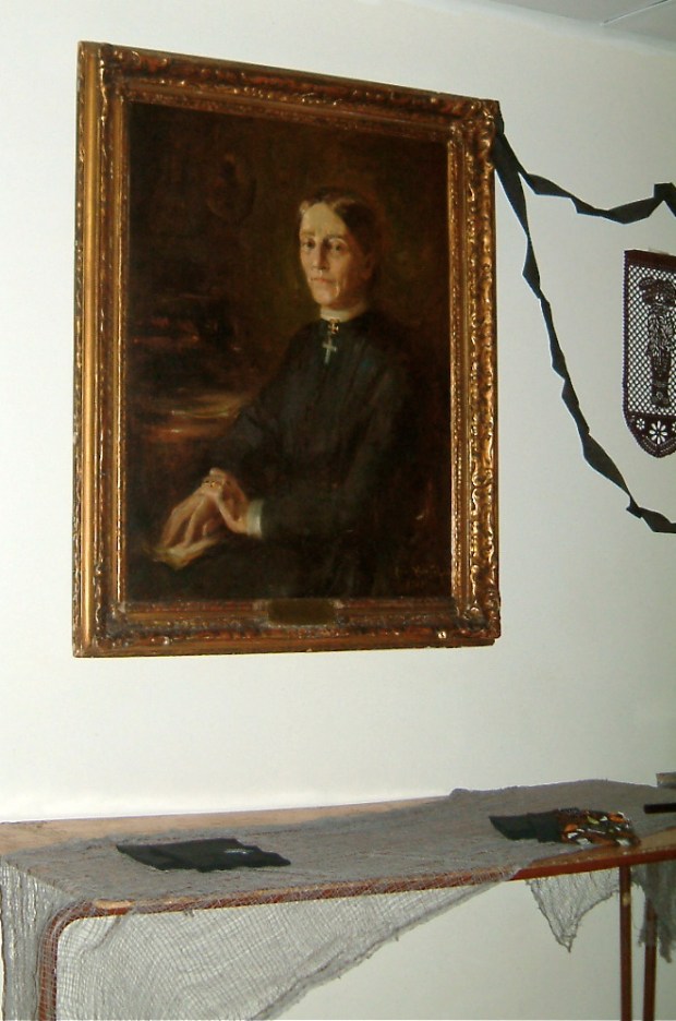 First, we attended our friends Heather and Martin’s anniversary part at St. Stephen in the Fields church. It was a Halloween shindig, and the Gothic architecture of the building made it feel all Hogwartsy. I did Tarot readings and Andrew and our friend Erik ran the shooting gallery. The most spooky thing was the portrait of the lady above, who kept watching me read fortunes with a disapproving glare.