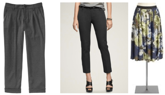 I like the slightly androgynous look of Laurent’s character’s wardrobe. It had a modern Annie Hall appeal. Above left and right are two more online purchase from the ON. In the middle, some grey trousers from the Gap outlet at the Dufferin Mall.