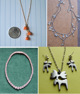 Tomorrow I will be selling some of my do-over and vintage jewels at a charity bazaar at work. Of course, the selection is tastefully curated. (Curated is the most over-used word for 2011, right?) If you are my work colleague, here is a selection of the fine jewellery that will be on offer tomorrow. While the prices are quite reasonable, Momma needs a new pair of mukluks, so bring lots of money and spend lots of money.
