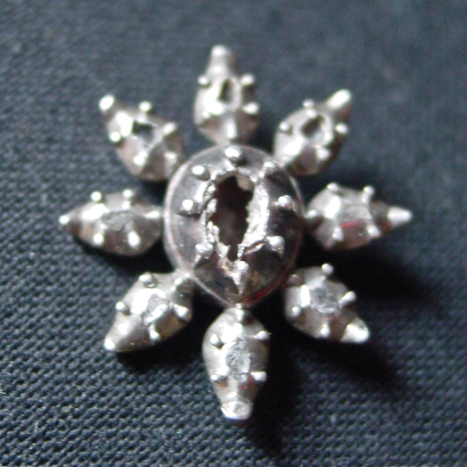 I found this late Georgian era earring in the very first bag of broken jewellery I ever bought (technically it was a mason jar, but let’s not get hung up on details). I kept it because it looked very old. The stones are table cut and were cast into the silver setting. Later, when I took a silversmithing course, I learned that this kind of setting could only be done with diamonds and sapphires because they are the only stones hard enough to withstand the heat.