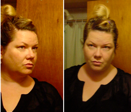 I’ve been admiring all the 20-year-olds on the Queen Streetcar with their effortless top knots. I tried to recreate the look myself, but I have a funny shaped head — flat in the back, weird weird hairline — and it never looked right. So yesterday morning I tried a modified top knot. I sectioned my hair into three parts. I pulled a section in the back into one bun so the back had some volume. I twisted the section in the front into a little quiff so the front had some lift. And I piled the middle third into a messy top knot. It got a little wilty by the end of the day, but overall I felt good about it.
