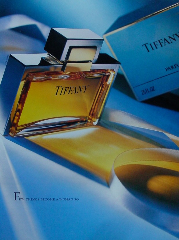 Remember Carole Bouquet, the face of Chanel in the ’90s? So beautiful. And I love the Tiffany ad below. The ’80s and early ’90s were heady times for perfume. Striking flaçons, bold scents. In practice it was kind of obnoxious, but there were some really creative fragrances coming out back in the day.