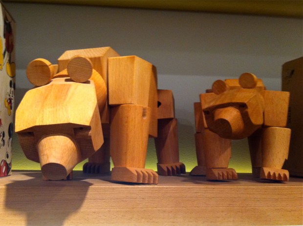 Did a long ramble on the weekend. Visited Magic Pony where I once again pined for these wooden articulated bear and moveable men sculptures by Areaware. Alas, I have too many arts to justify buying any more at the moment.