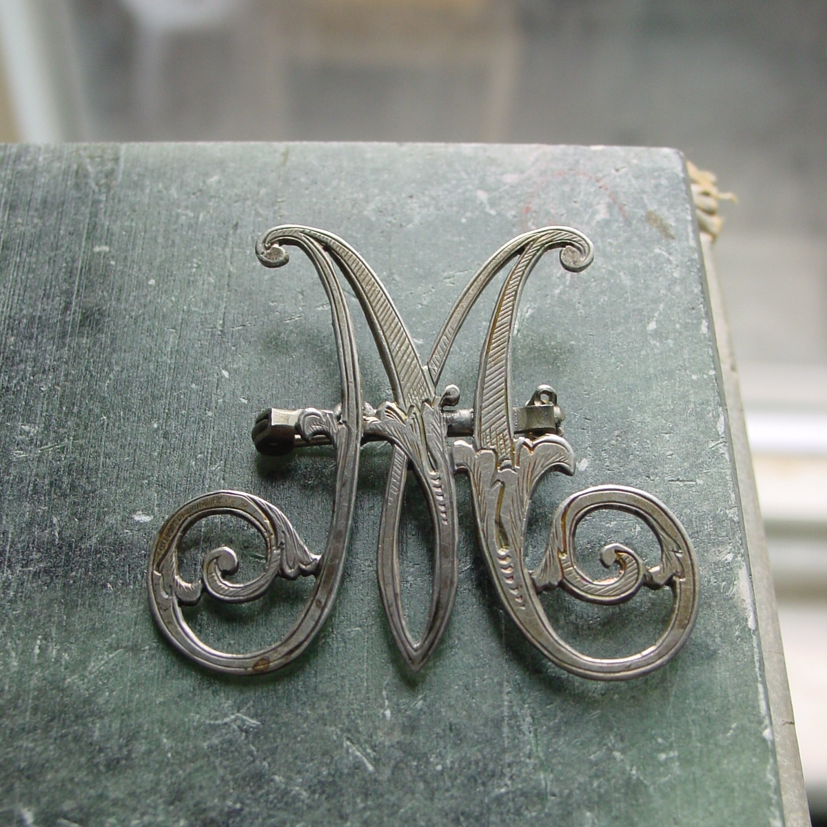 Next, I took a trip to Kensington Market, I found this monogrammed sterling “M” brooch at Shoney’s for a buck.