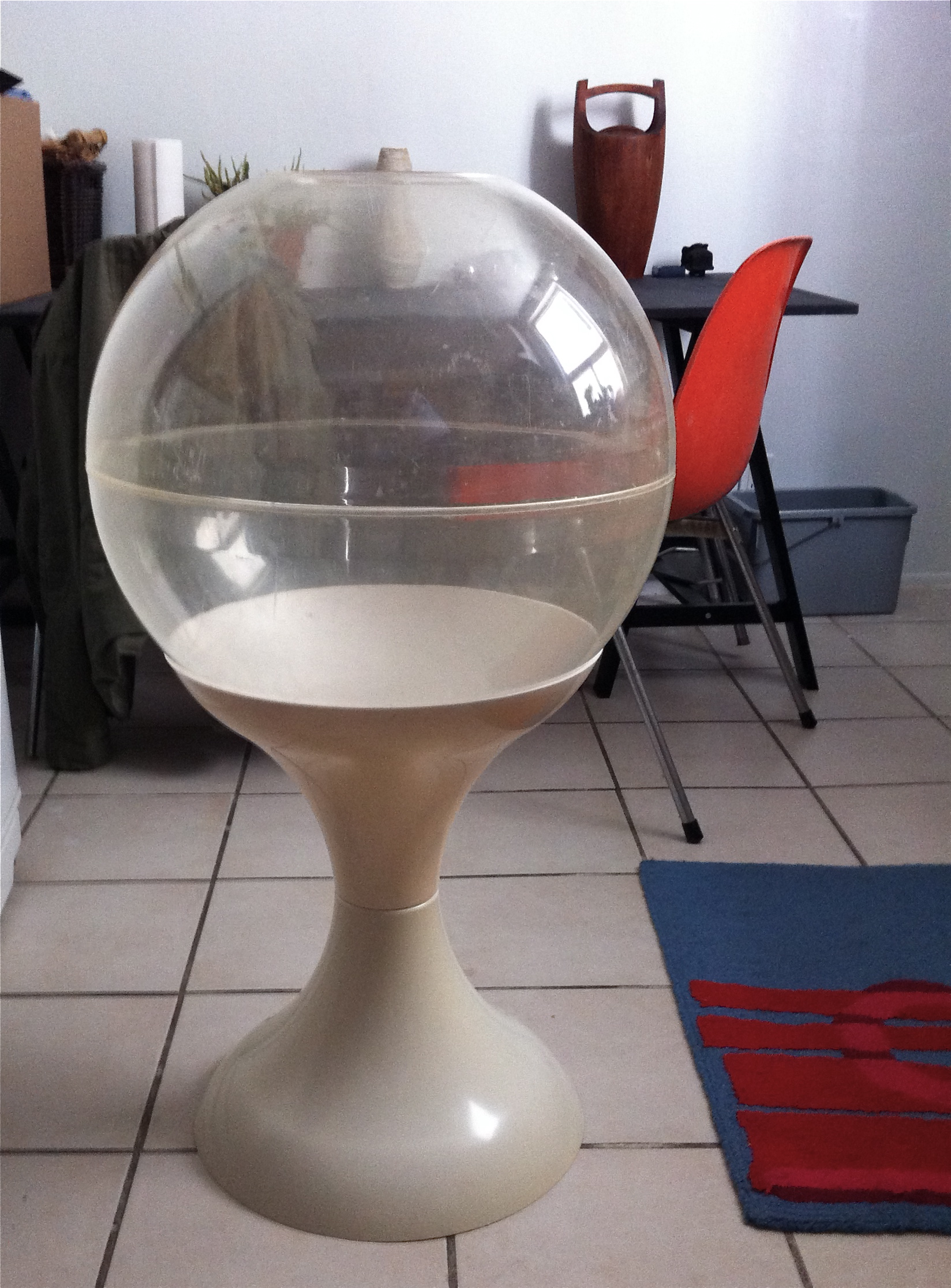 Went to visit my sister for Easter. On the way to her house she told me that we were passing a garage sale but she wasn’t stopping. “Why are you even mentioning it?” I asked. “Because you are going to notice it and ask to stop,” she replied. “Because it has awesome things.” And then we passed it and I noticed this Eero Saarinen-style, tulip-based terrarium on the lawn. I wanted to wrestle control of the car away from her, but I have taken a no-buying stuff vow. So we passed it by.