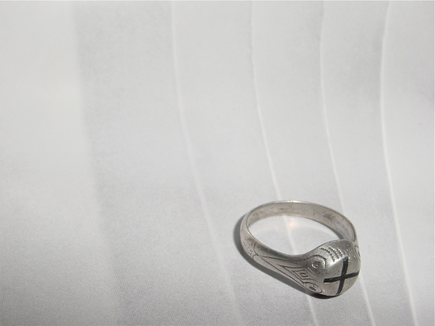Niello a method of enamelling that is achieved by baking a sulfur/metals powder in the carved out areas of silver. The Thai silversmiths were not the only artisans to employ this trick. And whilst researching niello alone, I came across some images of Russian niello wares of the 19th and early 20th century. While I didn’t find any rings with this cross design, the stirrup shape of the ring and the decorated shank were common.