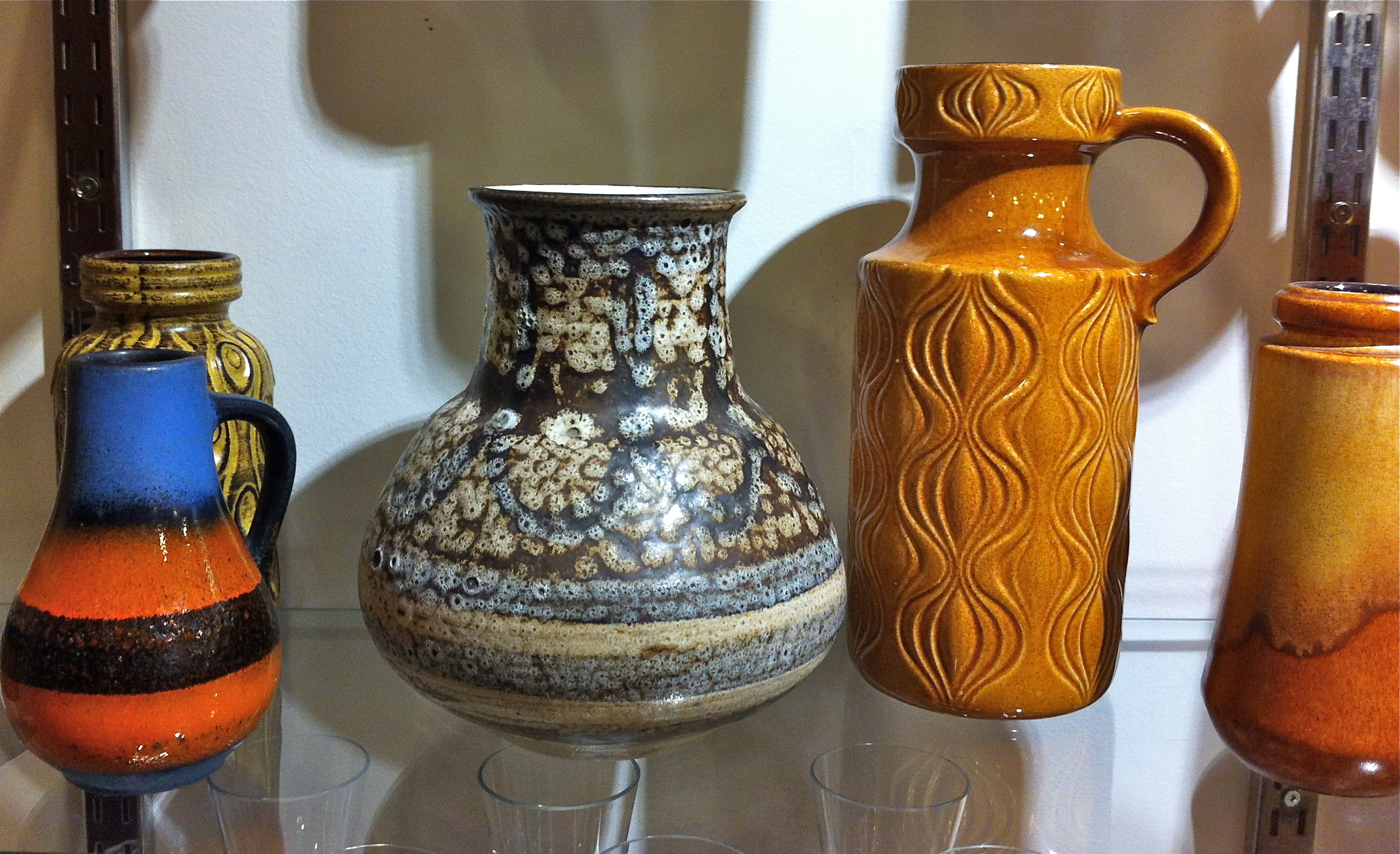 I’m no expert on ceramics, but I love the rugged textures, earthy colours and freeform shapes of vessels from this era. Scandinavian and Italian pieces from this era are super collectible, but Bungalow has a good selection of attractive and affordable pieces by Canadian potters such as Lotte and Beauce, as well as vases marked Western Germany.