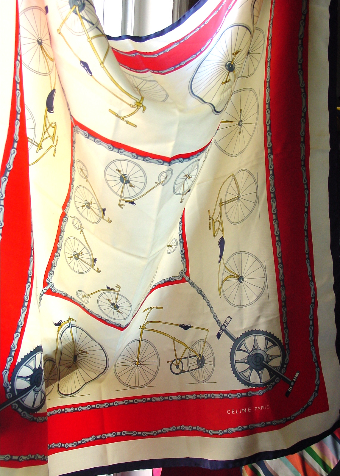 The big fashion get was a big square silk Céline Paris scarf ($5) with a cycling theme. The red, cream and blue colour scheme works wonderfully with my blue and white striped blazer.