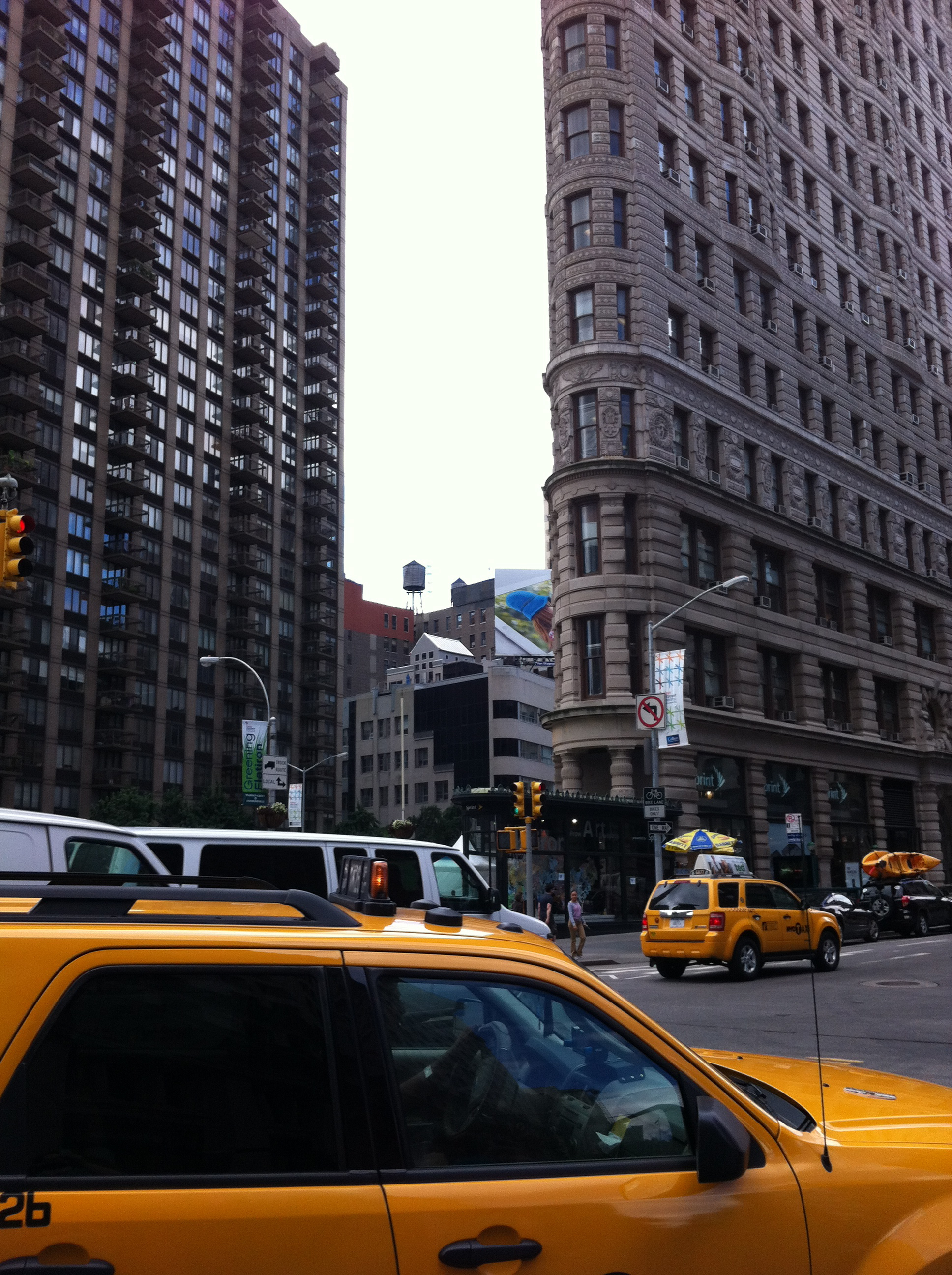 Went to New York City for a brief sojourn on Monday and Tuesday. Here are some snapshots from my wanderings. Above, on my way into the city from Newark International Airport. Below, a typical NYC street scene in front of the Flatiron Buidling (I used to work at Front and Church, and I feel I deserve the right to take some touristy photos of a Flatiron Building after having spent years enduring the out-of-towners posing for pictures in front of Toronto’s version).