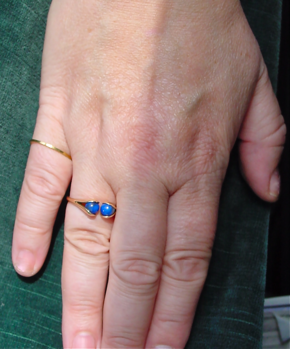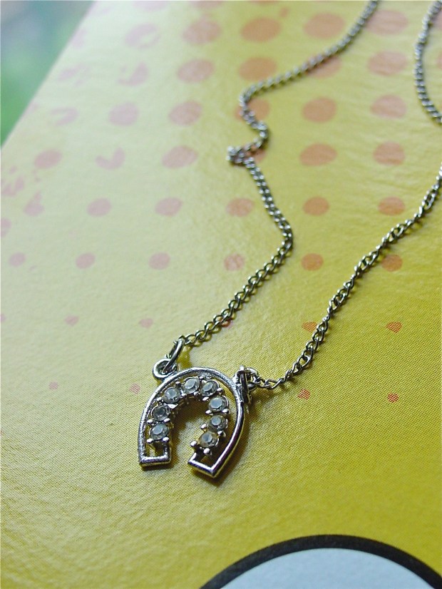 As a cushiony, middle aged lady, I sometimes feel like I have to wear big, bold statement jewellery just to keep the rest of me in proportion. Other times, I’m drawn to delicate jewellery, like the super simple pinky band pictured above (Elis Kauppi lapis and gold ring shown for scale). Or the teeny sterling horseshoe pendant pictured below.