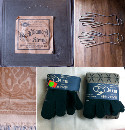 You know who is not wise as an owl? Me! I went on a thrift shopping bender last Saturday. It all started when I was on my way to a clothing donation bin to deliver two bags worth of earlier, ill-planned thrift shop benders. The bin near my house was no longer there, it’s location torn down to make way for condos. But since I was in the neighbourhood, I thought I’d stop by the Drake Fall Market. On the plus side, they had a free table, where I got a white t-shirt by Shared (some Luminato left over) and an old guitar string. But I ended up spending money on toe socks, cards and an antique piece of tin stamped “perfect.” I can sort of justify the tin and the card as I will use them in the propping and promotion of my new Etsy shop.