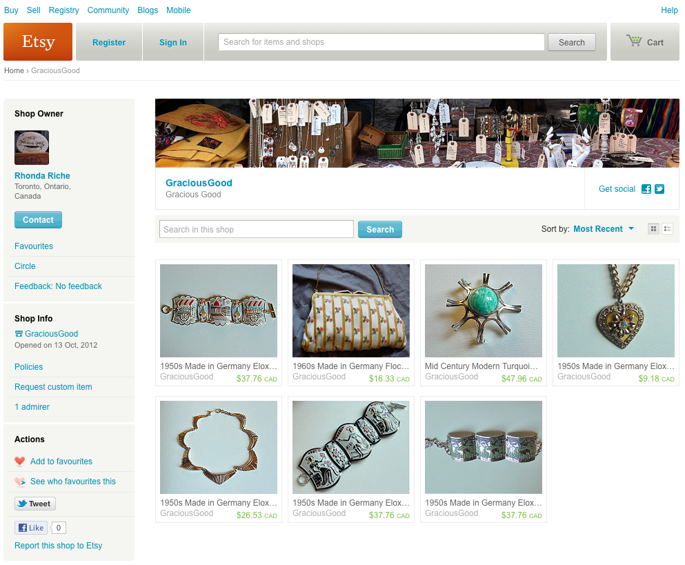 You can also follow my random tweets about comedy, jewellery and pictures of my cat on @RhondaRiche on Twitter. And finally, come visit my Gracious, Good Etsy shop — I’ll be stocking up with more goodies at the end of the month. End of announcements.