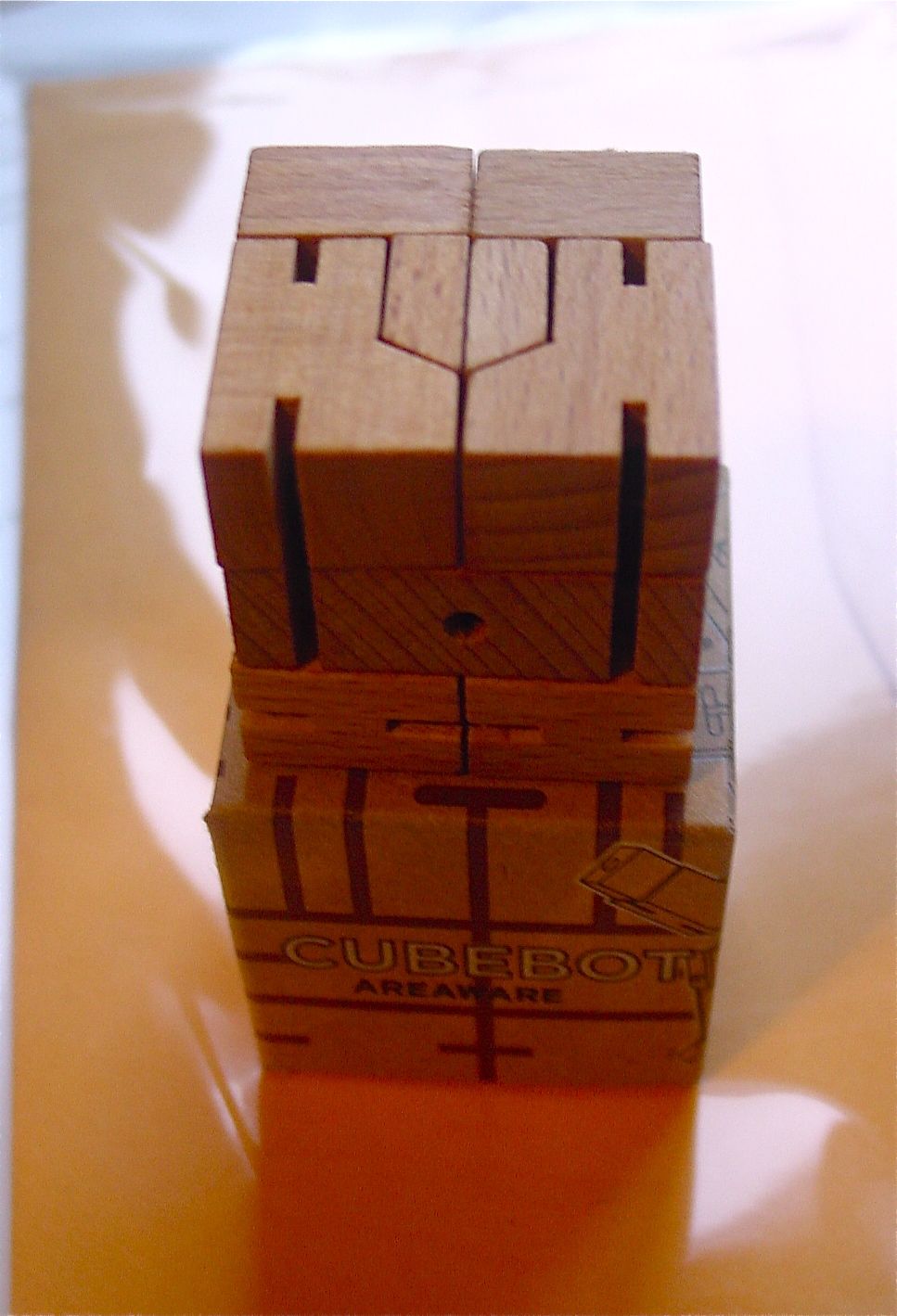 I always like to celebrate a new contract by buying myself a little prezzie. I’ve had my eye on the Areaware Ursa Major articulated bear, $135, for a very long time. unfortunately my next gig is only for one month. So I downsized I bought myself a mini Cubebot, $12, instead.