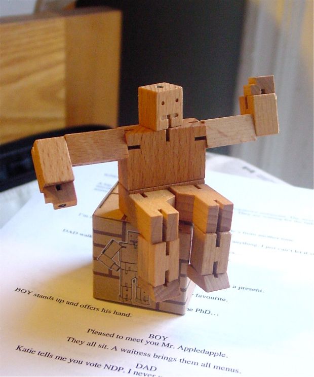 Ta dah! These wee Cubebots come in a bunch of different colours, but I like the woody fella shown above. Is it an art? Probably not. But maybe I can make some stop motion animation with it and that will be art.